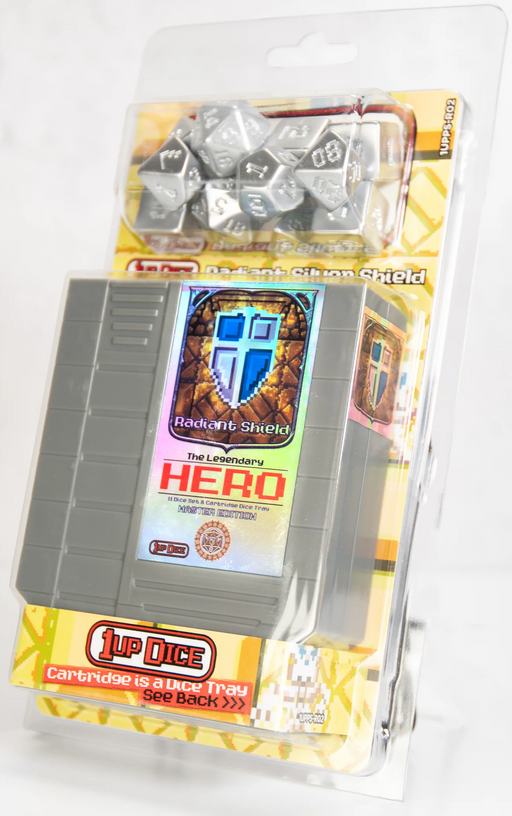 $49.99| /1UP Dice Radiant Silver Shield | RPG Polyhedral Dice Set | Infinite Black