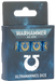 This is a set of 16 six-sided dice with squared edges for use in games of Warhammer 40,000, themed around the Ultramarines. They are cast in pearlised blue acrylic plastic with gold ink markings, and measure 16mm along each edge. The 1-5 facings are traditionally pipped, and each '6' face is decorated with the proud icon of the Ultramarines. This dice set is only available while stocks last.