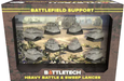 The BattleTech Battlefield Support: Heavy Battle & Sweep Lances is a collection of eight plastic miniatures for use in the classic BattleTech tabletop and Alpha Strike games. The box also provides eight dry-erase cards, which are intended to directly support Alpha Strike gameplay, and eight battlefield support Cards.
