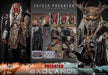 Hot Toys proudly presents the 1/6th scale Njohrr Collectible Figure. Standing approximately 14.1" (36cm) tall [Approximately 14.5" (37cm) tall with bio-mask], the figure features a newly developed head sculpt with separate rolling eyeballs. His distinctive white dreadlocks are adorned with gold-colored rings and are complemented by sculpted white spines and beard elements. Two sets of interchangeable mandibles are included, allowing collectors to display Njohrr in varying states of aggression. Njohrr’s newly developed body features a torso constructed from soft vinyl material, achieving a seamless design. Seven pieces of newly developed interchangeable hands, including a range of gesture hands, a wounded hand, and weapon-holding options, enable expressive poses that convey both ferocity and toughness.