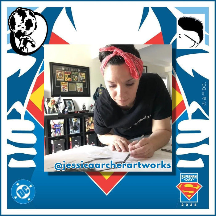 We’ve teamed up with talented local artist Jessica Archer Works to bring you something truly special — a hand-drawn, one-of-a-kind Superman sketch cover, available for a limited time only!